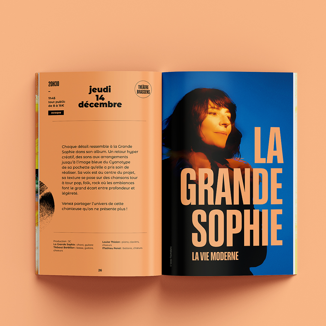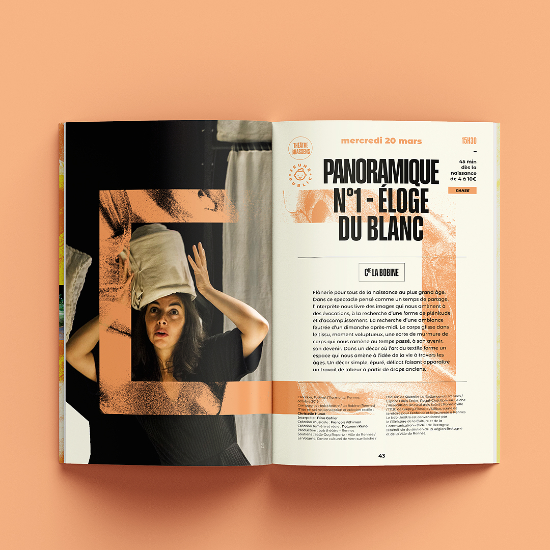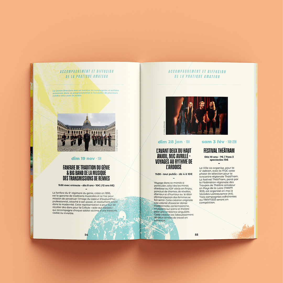 La ville d’Avrillé nous a confié une nouvelle fois l’identité de sa saison culturelle avec comme mot d’ordre « les pieds sur terre et la tête dans les nuages », clin d’œil à l’année des JO en France. Déclinaison de l’univers visuel sur les différents supports : programme, affiches spectacles, flyer, kakémonos…
