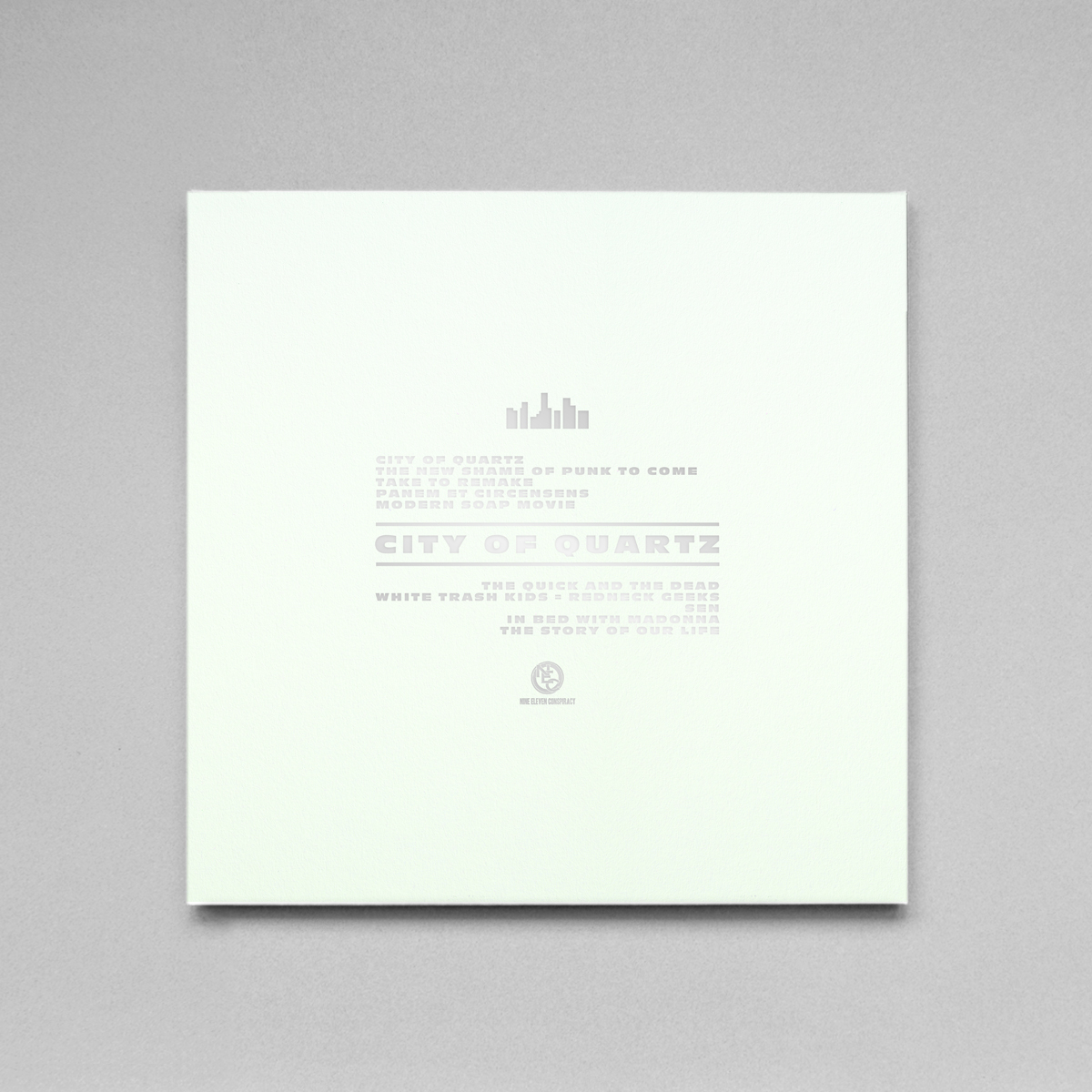 White album pour la réédition limitée des 10 ans de l’album City of quartz du groupe de post hardcore Nine Eleven. Conception et fabrication sur mesure des 100 exemplaires avec l’atelier de Letterpress La Máquina, jeux de matières et de nuances en blancs / gris.