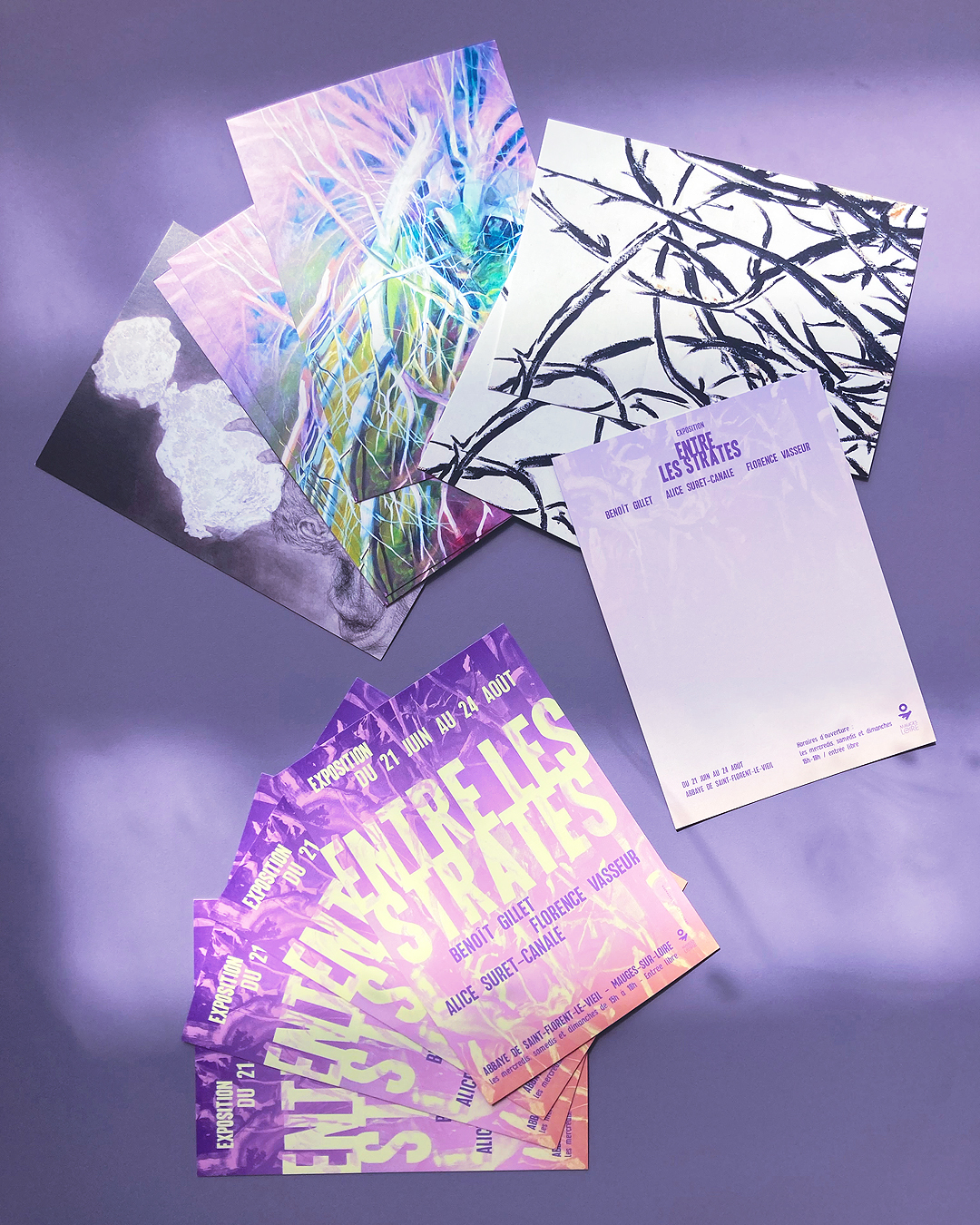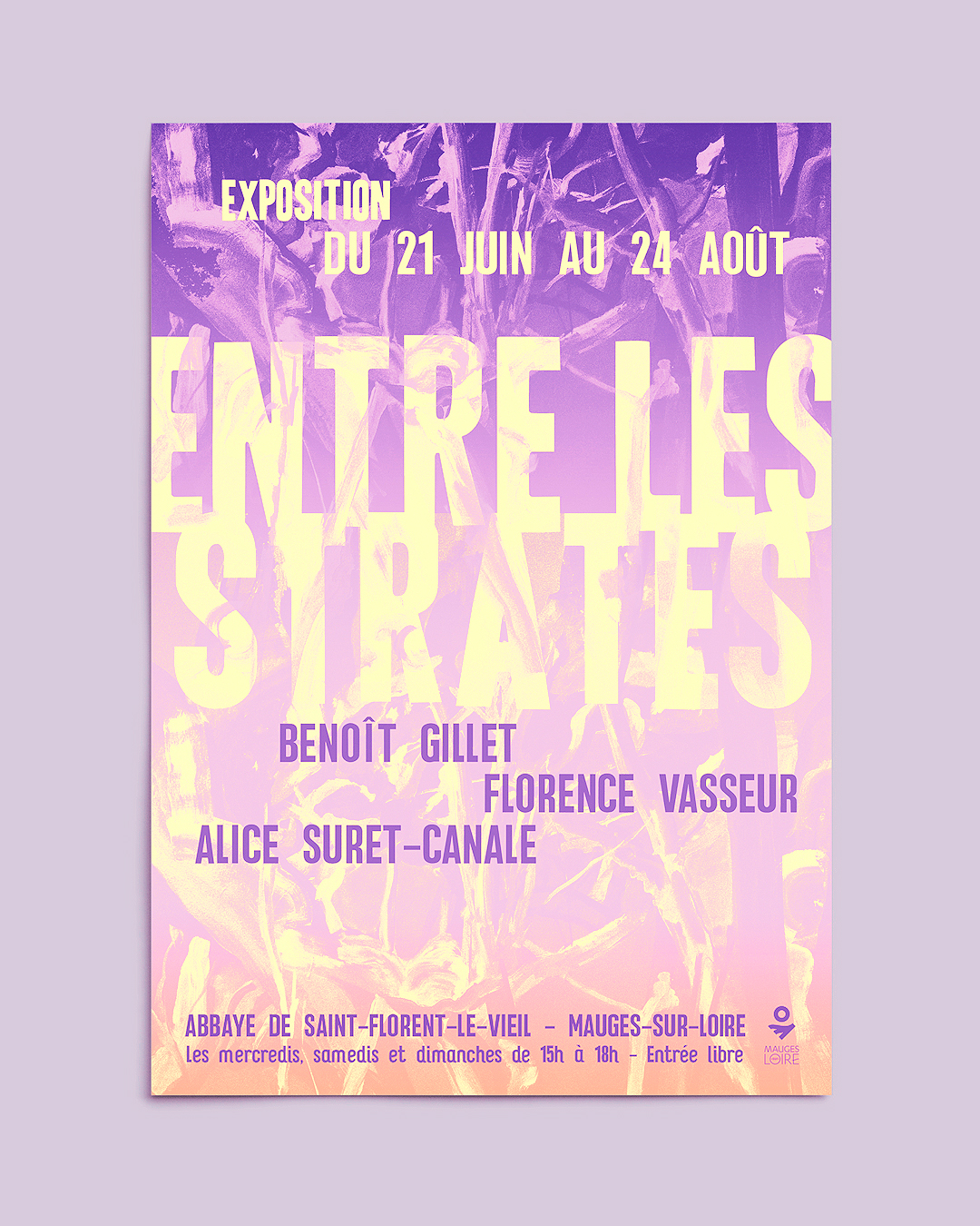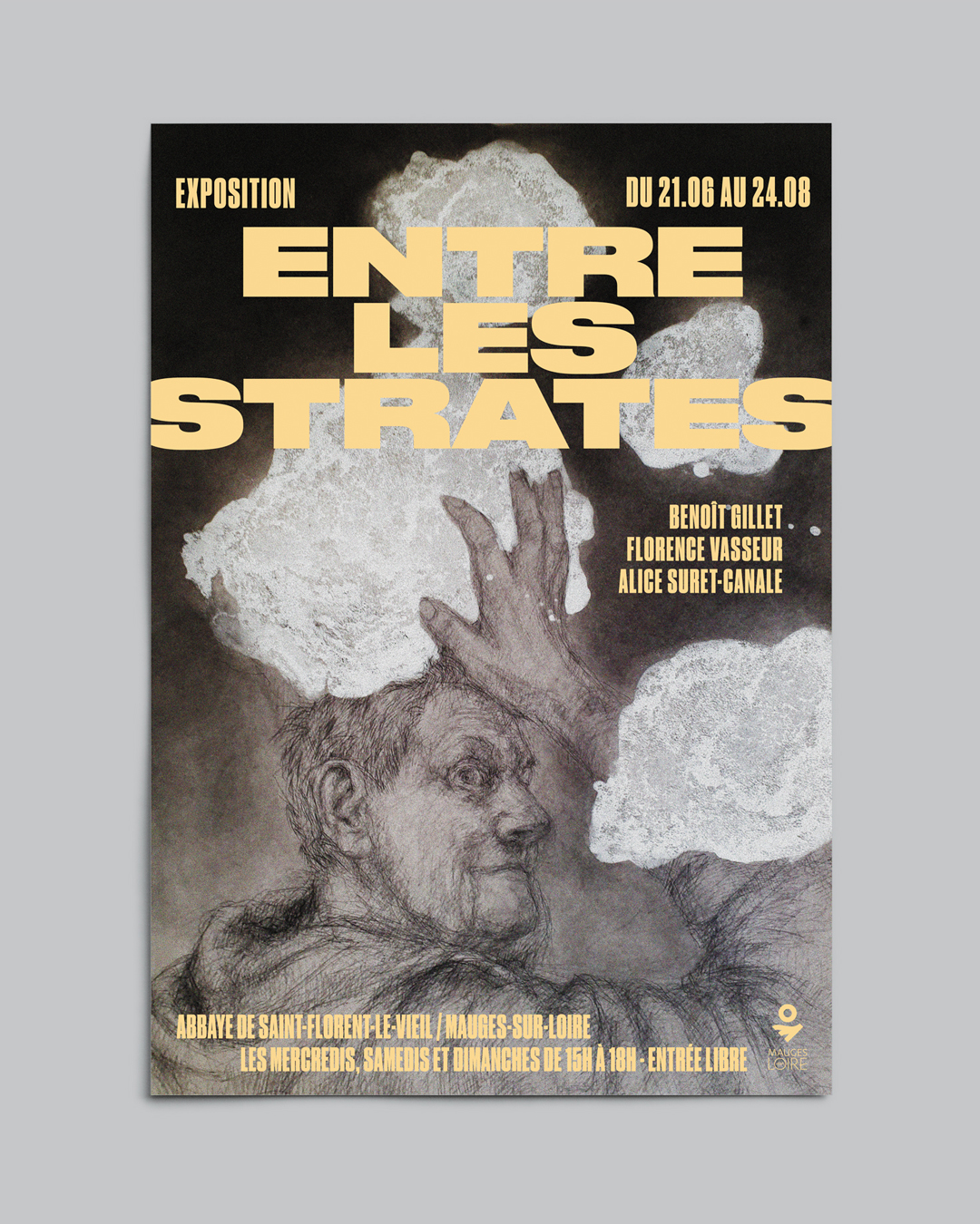 Réalisation de l’affiche de l’exposition collective « Entre les strates » qui s’est tenue à l’Abbaye de Saint-Florent-le-Vieil (Mauges-sur-Loire).