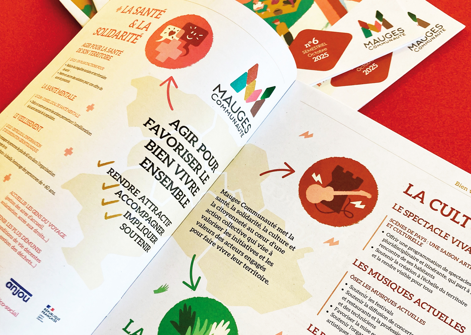 Illustrations et mise en page du 6e numéro du magazine thématique de Mauges Communauté, qui traite du vivre ensemble à travers les axes de la culture, de la santé et de la solidarité.