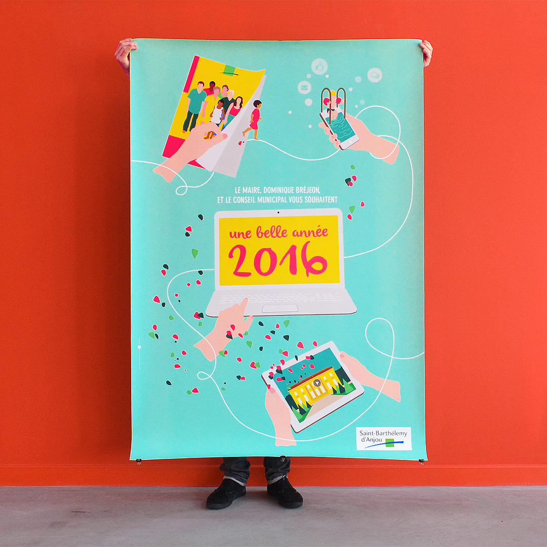 Vœux illustrés pour Saint-Barthélémy d’Anjou, avec un accent sur la communication numérique de la ville.
