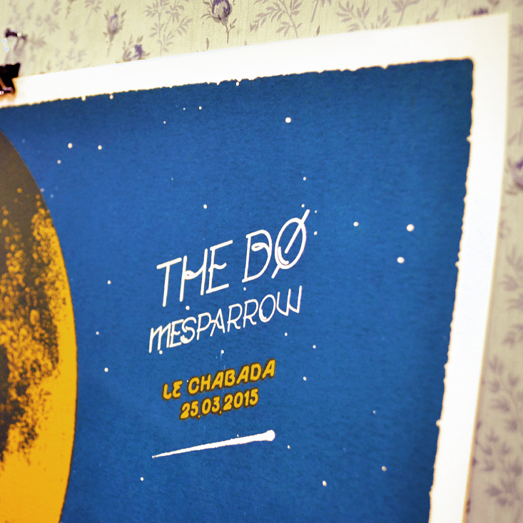 Affiche or et bleu nuit pour le concert de The dø / Mesparrow au Chabada (Angers), le 25 mars 2015.